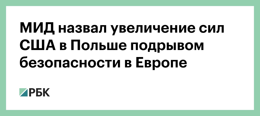 Россия видит в решении США об увеличении военного присутствия в Польше признак подготовки для последующих широкомасштабных развертываний сил. Москва будет учитывать это в оборонном планировании, сообщается на сайте МИД России.