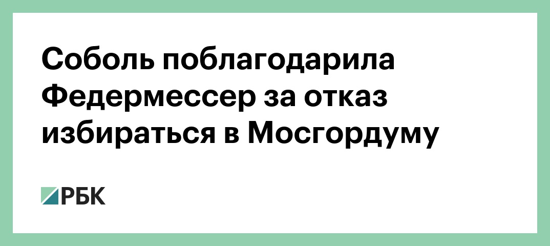 Юрист Фонда борьбы с коррупцией (ФБК) Любовь Соболь поблагодарила учредителя благотворительного фонда помощи хосписам «Вера» Нюту Федермессер за отказ баллотироваться в Могсгордуму. Об этом она написала в своем аккаунте в Twitter.