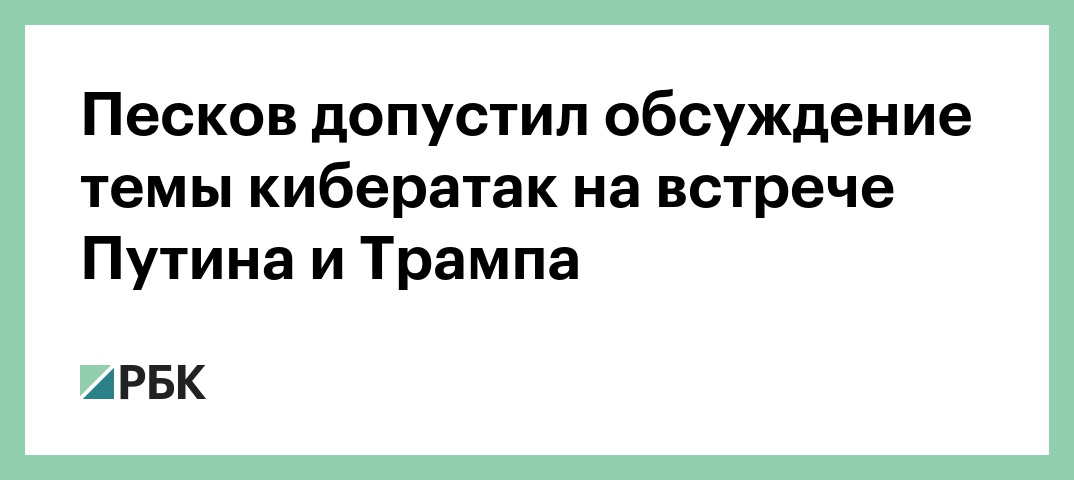 Россия подвергается кибератакам, в том числе исходящим от США, заявил РБК пресс-секретарь российского президента Дмитрий Песков. По его словам, вопрос американских кибератак может быть поднят в случае встречи Владимира Путина и Дональда Трампа в Осаке. «Этого нельзя исключать», — уточнил Песков.