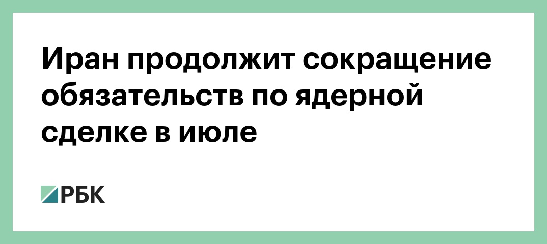 Тегеран 8 июня направил послам Германии, Великобритании, Китая и России уведомление о принятом решении «приостановить исполнение некоторых обязательств» по ядерной сделке. В частности, Иран не будет соблюдать договоренности по ограничению запасов обогащенного урана и тяжелой воды (она используется в ядерных реакторах). У других стран будет 60 дней на то, чтобы выполнить свои обязательства в банковской сфере и в области нефтяных месторождений.