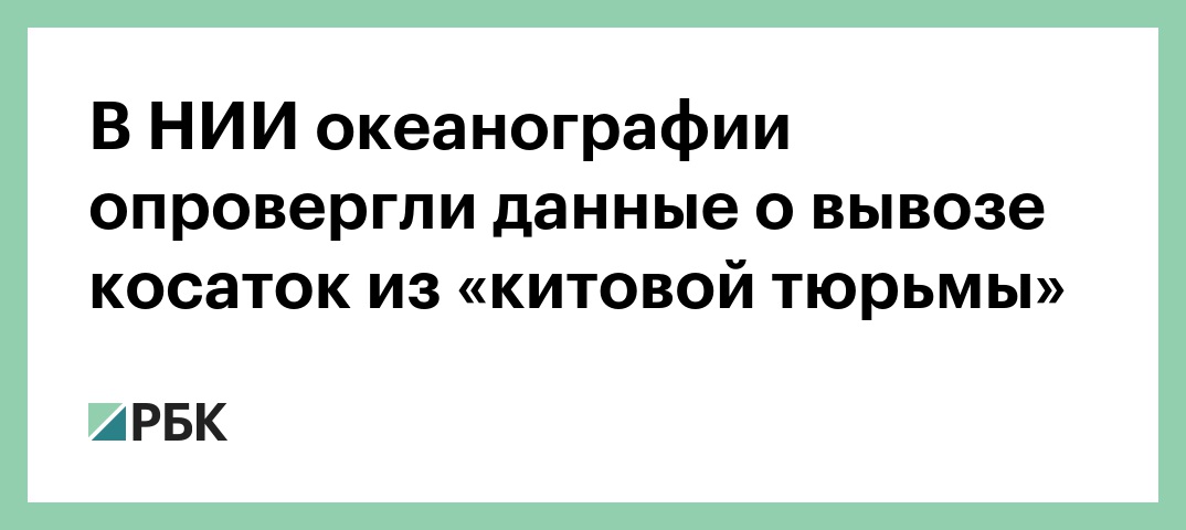 Пресс-секретарь Всероссийского НИИ рыбного хозяйства и океанографии (ВНИРО) Алексей Смородов опроверг информацию о том, что из «китовой тюрьмы» в Приморском крае начали вывозить косаток. Об этом сообщает «РИА Новости».
