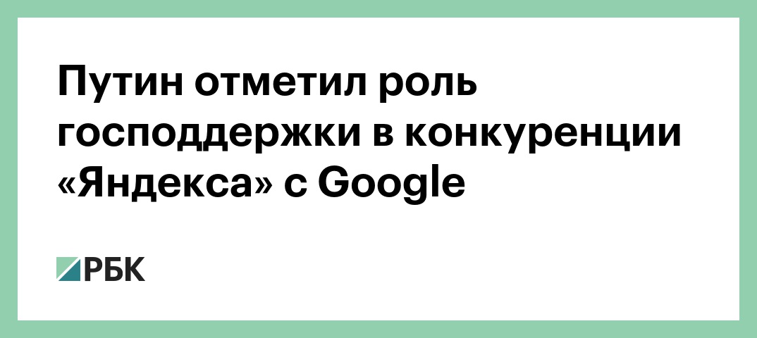 «У нас открытый рынок, он не защищен, а наша компания, такая замечательная как «Яндекс», успешно конкурирует с такими гигантами как Google. Все-таки это тоже не без поддержки государства», — сказал глава государства.