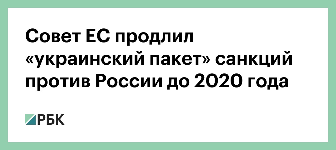 Санкции останутся в силе по меньшей мере до 23 июня 2020 года. Решение было принято на саммите представителей государств ЕС в Брюсселе. В соответствии с предыдущим решением, санкции истекали в июле. Ограничения затрагивают российский энергетический, оборонный и финансовый секторы.