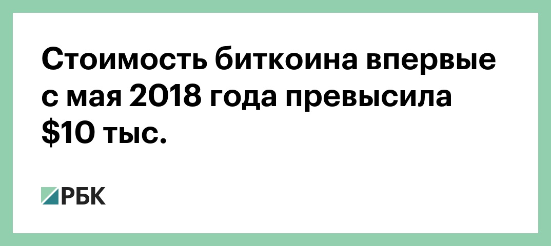 Стоимость биткоина впервые с мая 2018 года превысила $10 тыс.