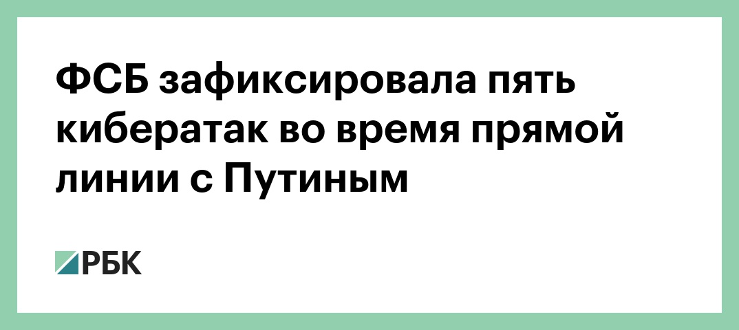 При проведении «Прямой линии c президентом России Владимиром Путиным» были зарегистрированы пять DDoS-атак на разного рода ресурсы, участвующие в освещении мероприятия. Об этом рассказал журналистам замначальника Центра защиты информации и специальной связи ФСБ и замдиректора Национального координационного центра по компьютерным инцидентам (НКЦКИ) Николай Мурашов, передает корреспондент РБК.