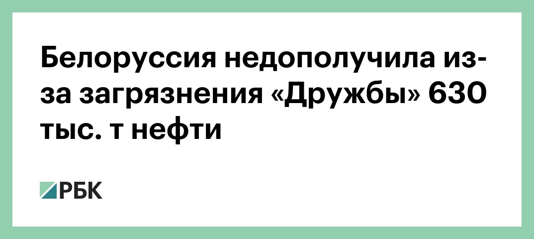 Белоруссия из-за загрязнения трубопровода «Дружба» недополучила около 630 тыс. т российской нефти. Об этом сообщил вице-премьер страны Игорь Ляшенко, передает ТАСС. Так, с апреля по июнь Мозырский НПЗ недополучил 200 тыс. т, ОАО «Нафтан» — 430 тыс. т.