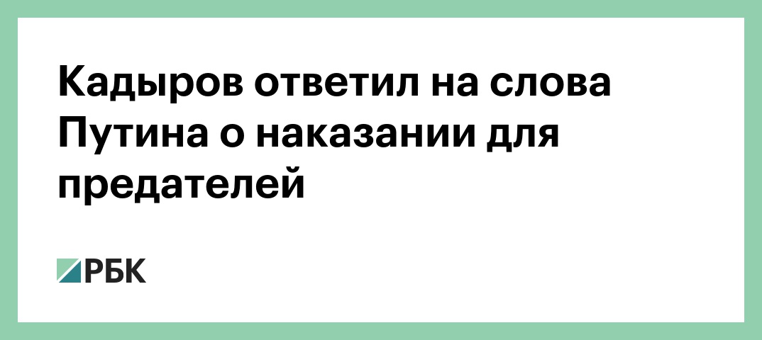 Попытки создания в России «пятой колонны» нужно воспринимать как предательство и измену, вне зависимости от того, кто за ними стоит. Об этом в своем Telegram-канале написал глава Чечни Рамзан Кадыров. Так он прокомментировал заявление российского президента Владимира Путина о том, что предательство — «это самое мерзкое преступление, которое можно себе представить».