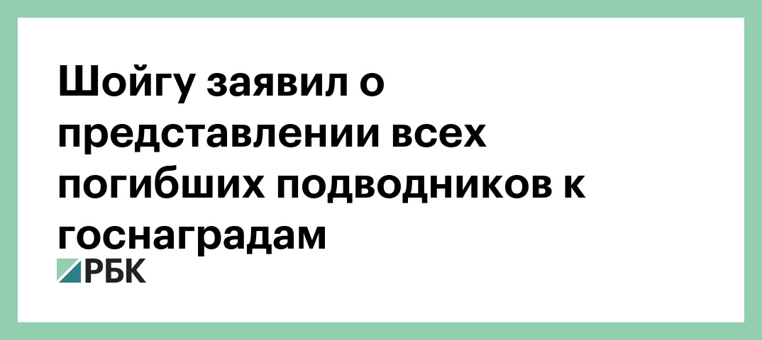 Семеро из них, напомнил Шойгу, были капитанами первого ранга, еще трое — капитанами второго ранга. У двух погибших были звания Героев России. Все они «до конца выполнили свой долг на боевом посту, выполняя задачу по защите нашей родины», и будут представлены к государственным наградам, заявил министр. Всю необходимую помощь и поддержку их семьям окажет Минобороны, добавил он.