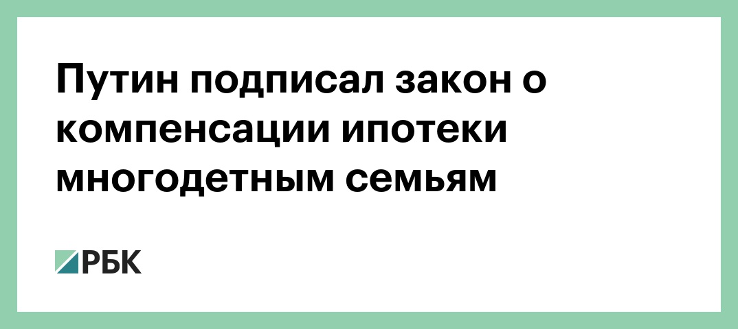 Путин подписал закон о компенсации ипотеки многодетным семьям