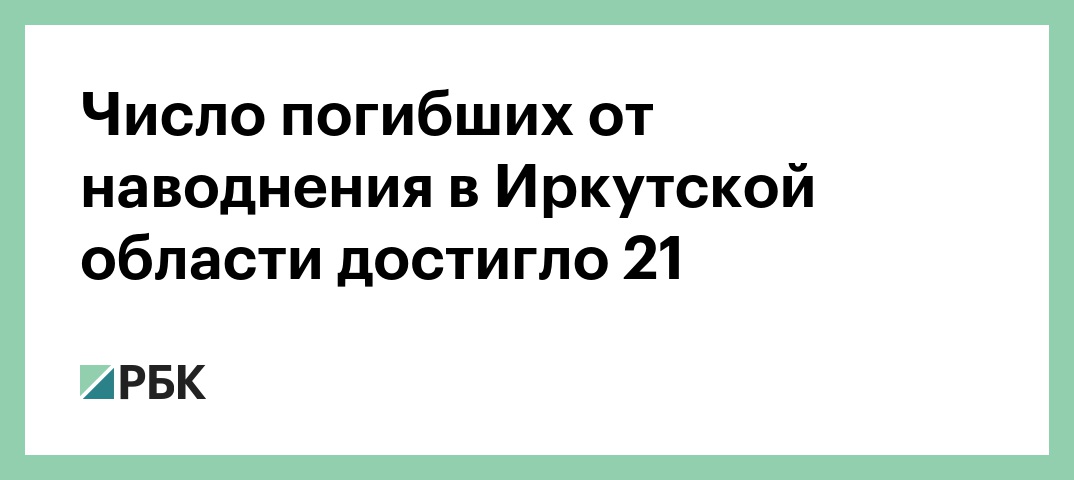 Число погибших в результате наводнения в Иркутской области возросло до 21, сообщили РБК в пресс-службе правительства региона.