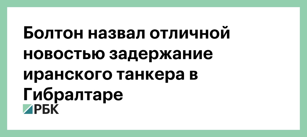 Помощник президента США по национальной безопасности Джон Болтон назвал «отличной новостью» задержание иранского танкера в Гибралтарском проливе. Об этом он написал в своем аккаунте в Twitter.