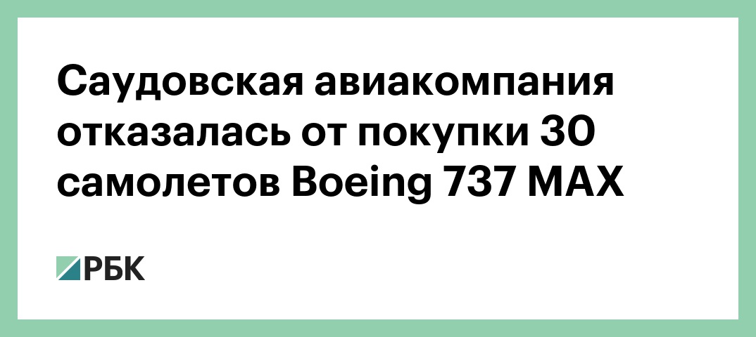 Саудовская авиакомпания Flyadeal, принадлежащая авиаперевозчику Saudia, отказалась приобретать у американской авиастроительной корпорации Boeing 30 самолетов модели 737 MАХ. Об этом сообщает BBC News.