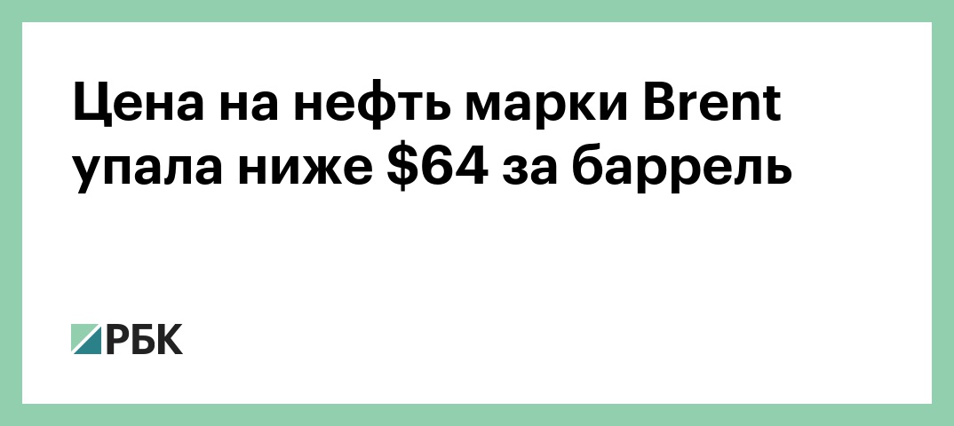 Цена на нефть марки Brent упала ниже $64 за баррель, следует из данных Лондонской биржи ICE.