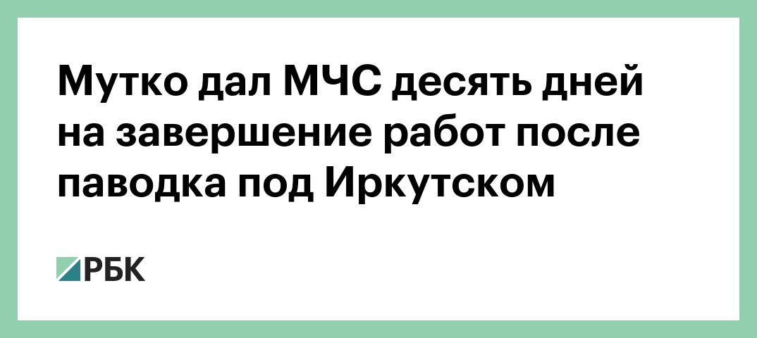 Вице-премьер Виталий Мутко по итогам заседания правительственной комиссии поручил МЧС завершить аварийные работы в Иркутской области до 19 июля. Об этом говорится в поступившем в РБК сообщении пресс-службы Мутко.