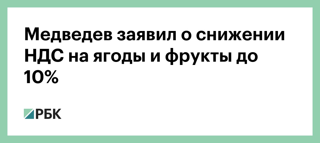 За неделю до этого он рассказал о двух возможных вариантах поддержки российских производителей фруктов и ягод: субсидировать их или понизить ставку НДС до 10%. По словам Медведева, «ягоды, фрукты у нас исторически оказались в другой ставке НДС, что, наверное, было объяснимо в 1990-е годы, но трудно объяснимо сейчас».