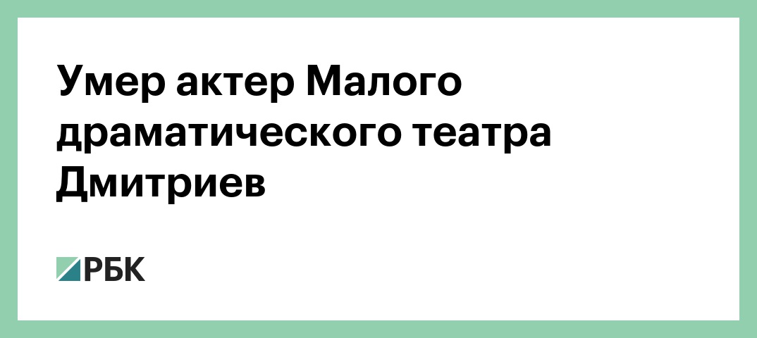 Умер актер Малого драматического театра Дмитриев