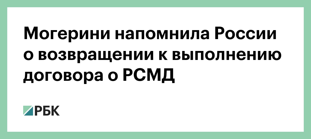Могерини напомнила России о возвращении к выполнению договора о РСМД