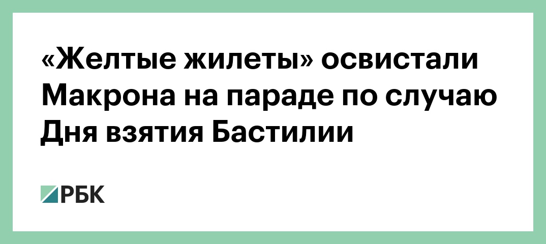По данным издания, «желтые жилеты» выразили протест, когда Макрон ехал в автомобиле по Елисейским Полям. Отмечается, что протестующие не надели светоотражающие жилеты. Участники акции продолжили выражать свое недовольство на улицах неподалеку от Елисейских Полей и после парада.