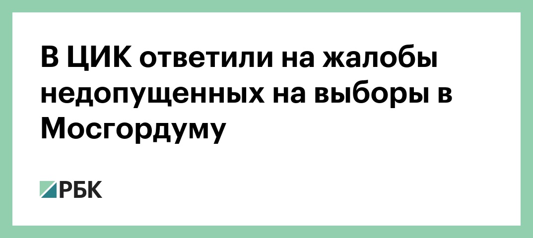 В Центральной избирательной комиссии посоветовали недопущенным на выборы в Московскую городскую думу кандидатам обратиться в суд или в вышестоящую избирательную комиссию, «если у кого-то из них есть ощущение, что ему необоснованно предъявили претензии», — сообщил РБК зампредседателя ЦИК Николай Булаев.