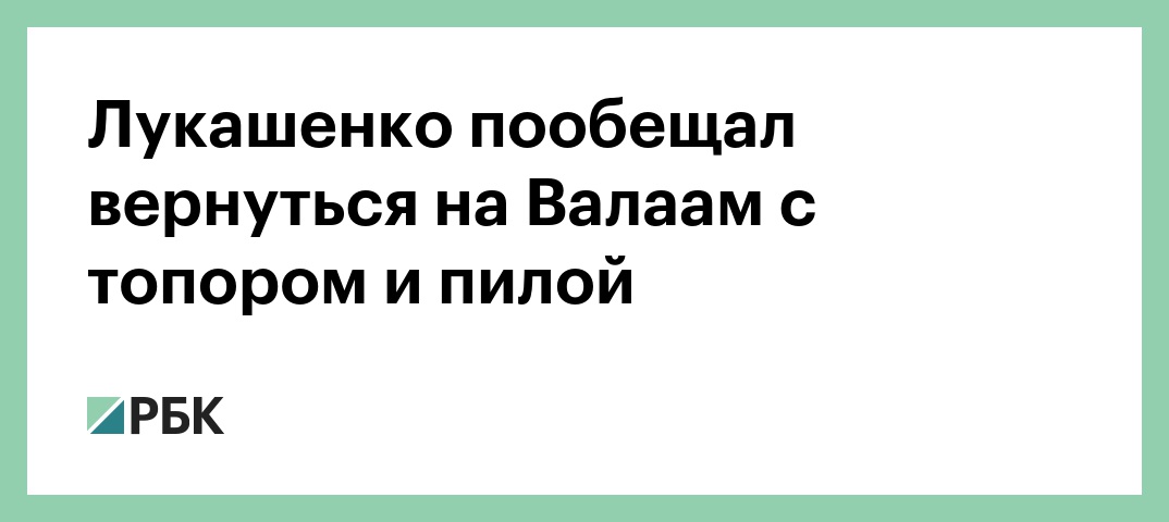 Президент Белоруссии Александр Лукашенко при посещении монастыря на острове Валаам в Карелии пообещал в свой следующий приезд взять с собой топор и косу. Об этом сообщает Euroradio.fm.