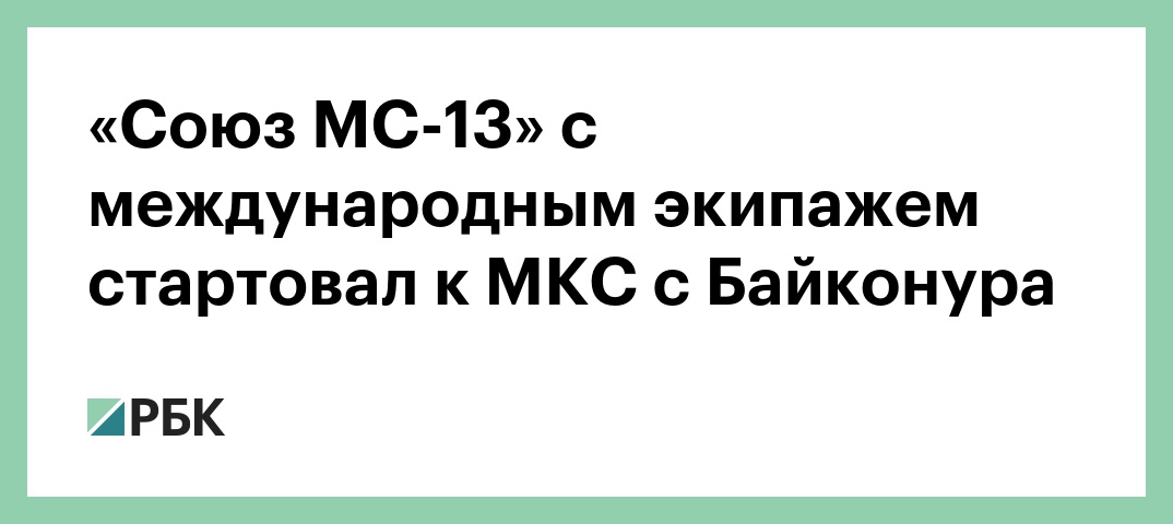 С Байконура к Международной космической станции (МКС) успешно стартовал пилотируемый корабль «Союз МС-13» с ракетой-носителем «Союз-ФГ». Об этом сообщает «Роскосмос» в Twitter.
