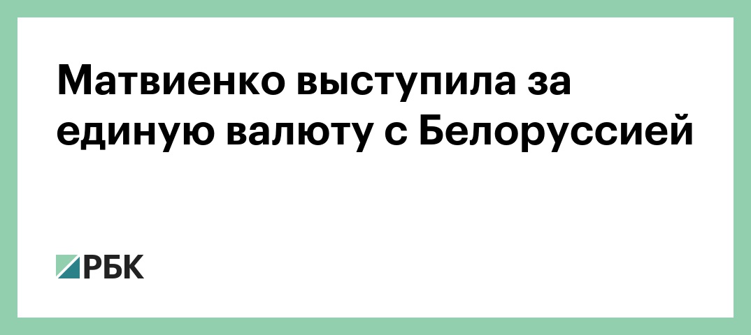 Председатель Совета Федерации Валентина Матвиенко поддержала идею введения единой валюты между Россией и Белоруссией в рамках Союзного государства. Об этом спикер верхней палаты парламента заявила в эфире белорусского телеканала ОНТ.