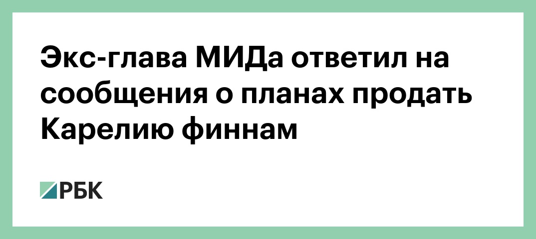 Россия никогда не планировала продавать Карелию, заявил РБК первый министр иностранных дел России Андрей Козырев. О том, что такие планы обсуждались в период правления Бориса Ельцина, сообщало финское издание Helsingin Sanomat.