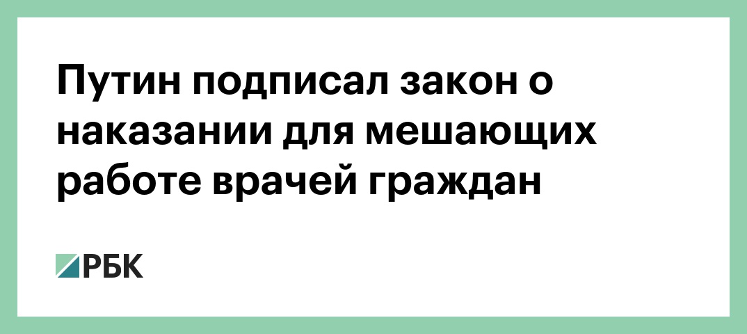 Путин подписал закон о наказании для мешающих работе врачей граждан