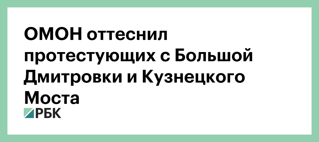 Цепь сотрудников ОМОНа оттеснила участников несогласованной акции, находящихся на улице Камергерский переулок, Кузнецкий Мост, а также Большая Дмитровка, сообщает корреспондент РБК.