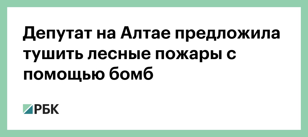 Депутат Алтайского краевого заксобрания от фракции партии ЛДПР Евгения Боровикова предложила тушить лесные пожары с помощью бомб, приводя в пример аналогичные действия других стран. Об этом сообщается на сайте партии в Алтайском крае.