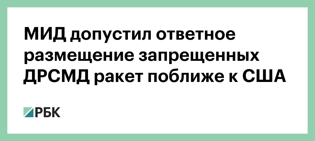 Замглавы МИД России Сергей Рябков допустил размещение Россией запрещенных ДРСМД ракет ближе к США. Таким образом он ответил на вопрос про действия страны в случае размещения США запрещенных договором ракет наземного базирования в Европе, сообщает «Интерфакс».