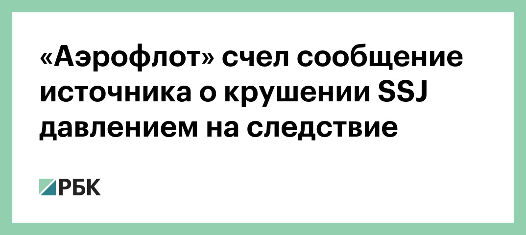Заявление источника в следственных органах, опубликованное информагентством ТАСС, о причинах крушения SSJ100 в Шереметьево служит неприкрытой попыткой оказать давление на комиссию Межгосударственного авиационного комитета (МАК) и следственные органы. Об этом говорится в сообщении «Аэрофлота», поступившем в РБК.