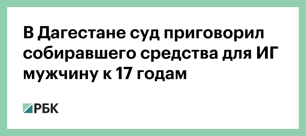 Северо-Кавказский окружной военный суд приговорил жителя Дагестана к 17 годам колонии строгого режима за финансирование запрещенной в России международной террористической организации «Исламское государство». Об этом рассказали РБК в пресс-службе суда.