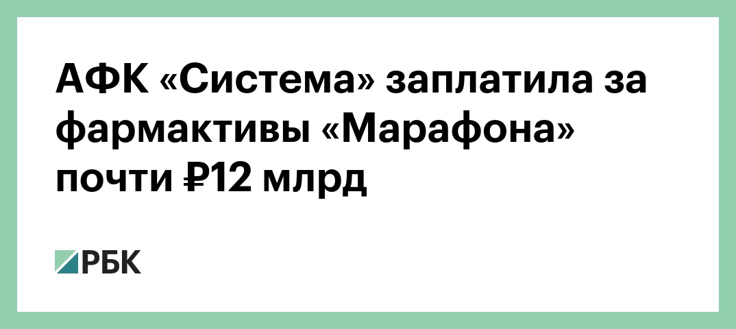 АФК «Система» заплатила за фармактивы «Марафона» почти ₽12 млрд