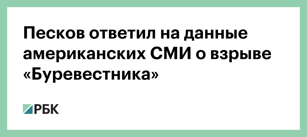 Пресс-секретарь президента России Дмитрий Песков прокомментировал появившуюся в американских СМИ информацию о том, что взрыв в Архангельской области произошел при испытании прототипа ракеты с ядерной установкой «Буревестник». Об этом передает корреспондент РБК.