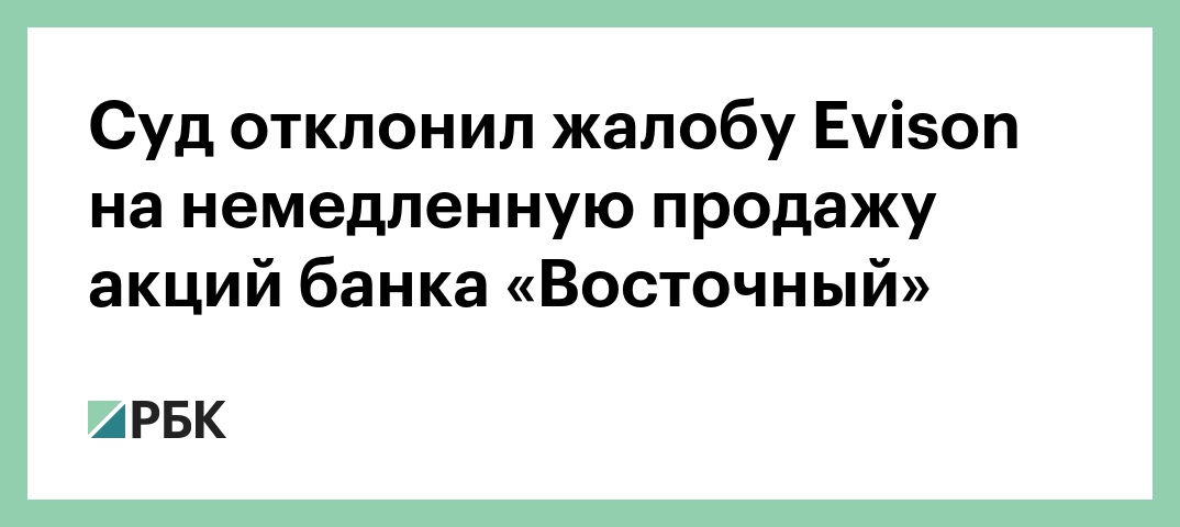 Суд отклонил жалобу Evison на немедленную продажу акций банка «Восточный»