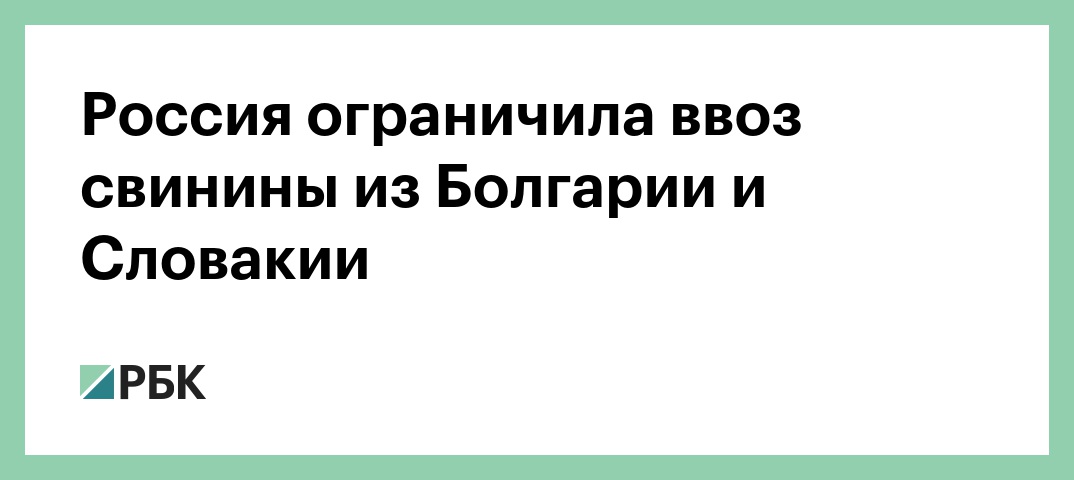 Запрет был введен с 9 августа, однако проинформировало ведомство об этом только сейчас. «С 9 августа вводятся временные ограничения на поставки в Российскую Федерацию со всей территории Словакии и Болгарии живых свиней, продуктов убоя свиней, свинины и продукции, содержащей свинину, эмбрионов свиней и спермы хряков», — говорится в материалах Россельхознадзора.