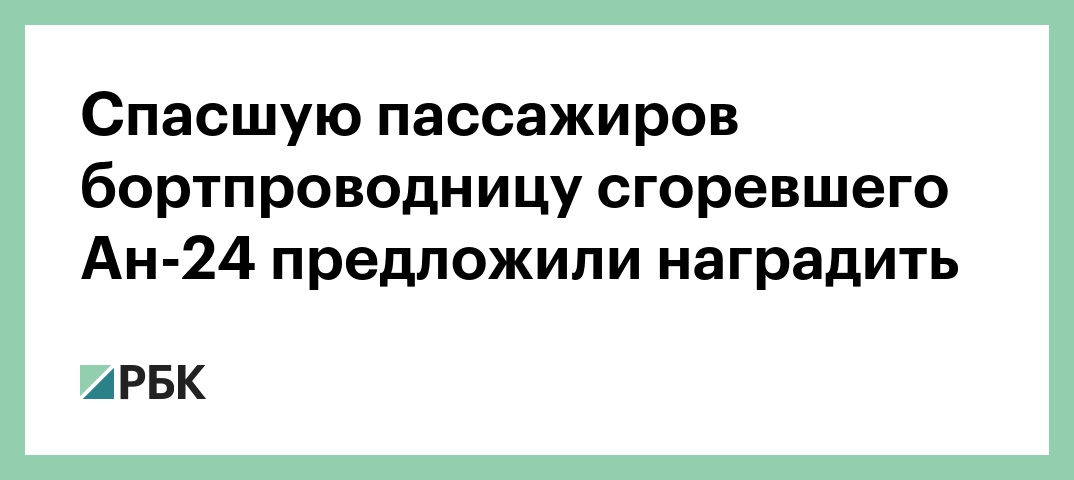 Спасшую пассажиров бортпроводницу сгоревшего Ан-24 предложили наградить