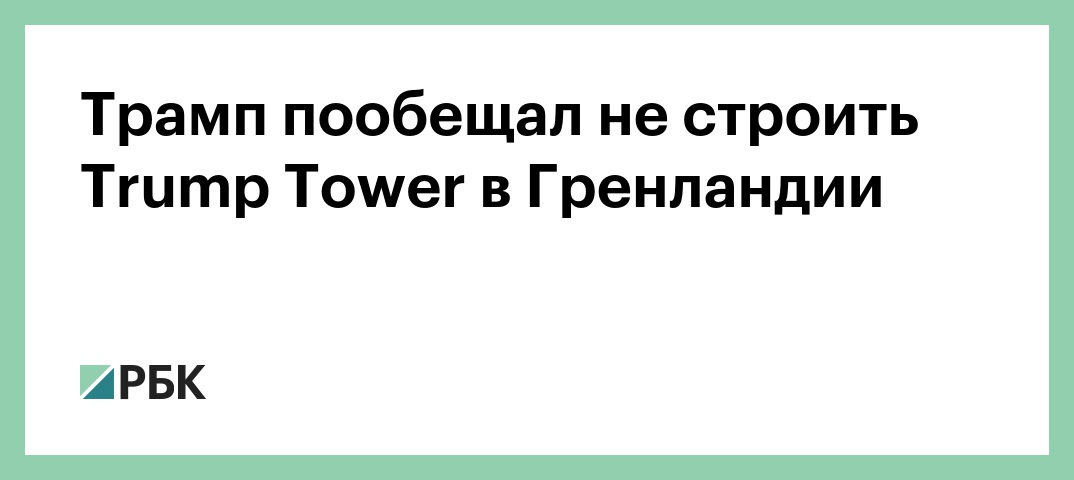 «Я обещаю не делать этого в Гренландии», — говорится в подписи к коллажу. Для его создания, судя по внешнему сходству, использовалась фотография Trump Tower в Лас-Вегасе. Там расположен элитный отель.
