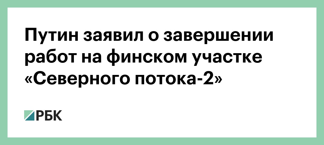 Президент России Владимир Путин сообщил, что строительство участка газопровода «Северный поток-2» на территории экономической зоны Финляндии завершено. Об этом он сообщил на пресс-конференции по итогам переговоров с финским лидером Саули Ниинистё в Хельсинки, трансляцию вел телеканал «Россия 24».