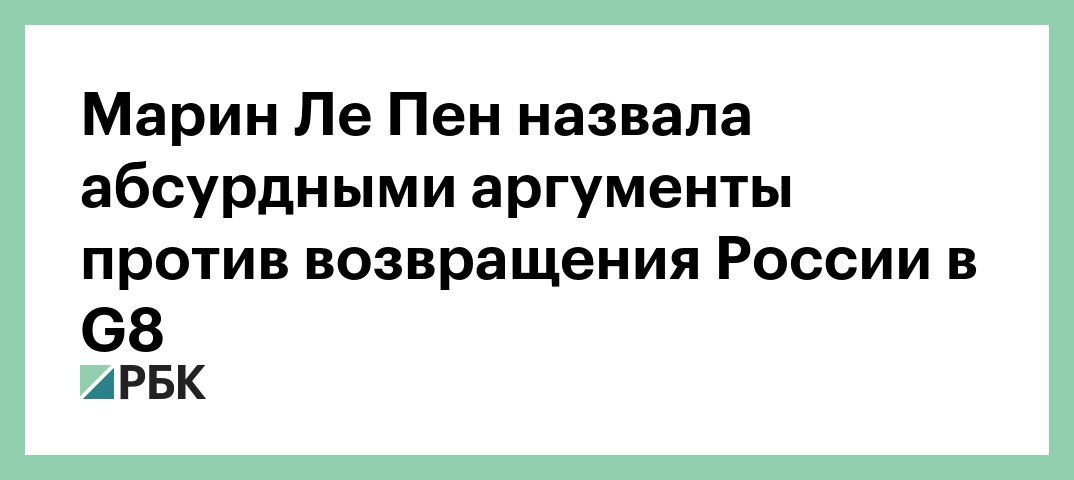 «Выступая против возвращения России в новый G8, Европейский союз воспроизводит абсурдную пародию на холодную войну», — заявила Ле Пен. Она добавила, что «подобная антироссийская идеология не только анахронична, но и совершенно непродуктивна для интересов европейских наций».