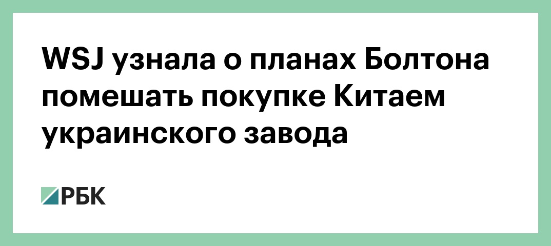 WSJ узнала о планах Болтона помешать покупке Китаем украинского завода