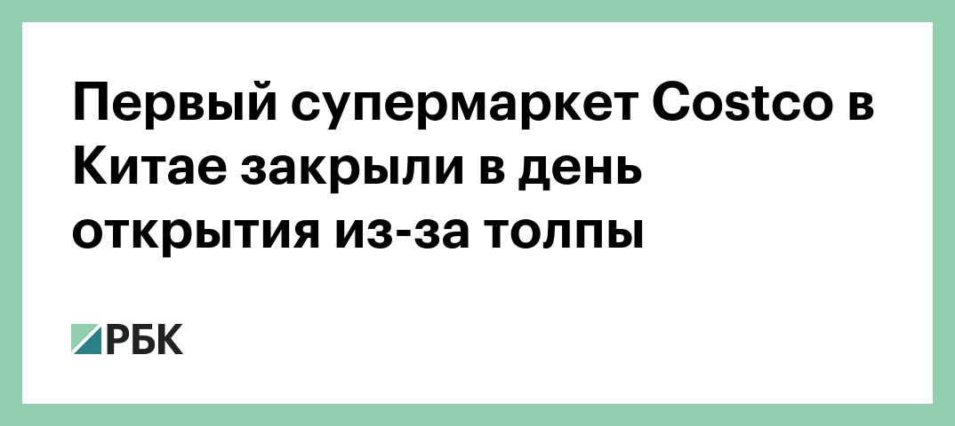 Американская сеть гипермаркетов Costco Wholesale Corporation была вынуждена закрыть свой первый магазин в Китае рано утром в день его открытия, 27 августа, после ажиотажа среди покупателей, создавшего пробки в районе Шанхая. Об этом со ссылкой на государственные СМИ передает Reuters.
