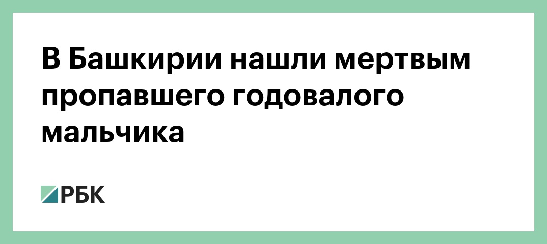 В Башкирии нашли мертвым пропавшего годовалого мальчика
