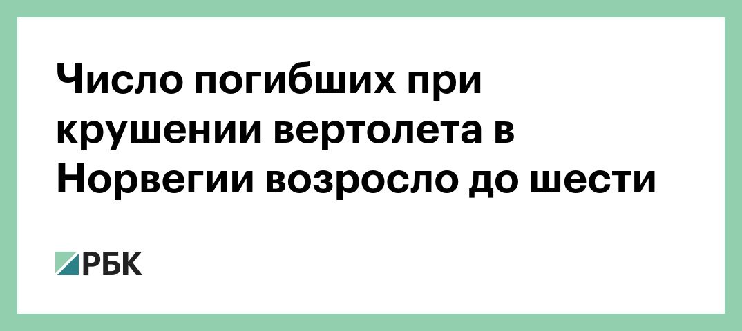 Число погибших при крушении вертолета в Норвегии возросло до шести