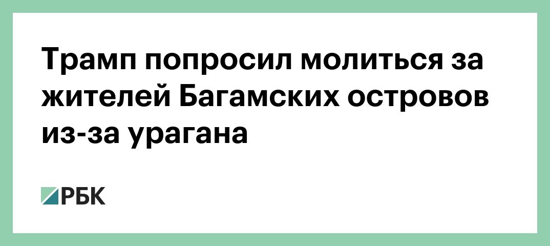 Президент США Дональд Трамп отреагировал на сообщения о том, что ураган «Дориан» обрушился на Багамские острова. «Молитесь за людей на Багамах. Такого удара не было никогда прежде. Категория 5. Почти 200 миль в час», — написал он в Twitter.