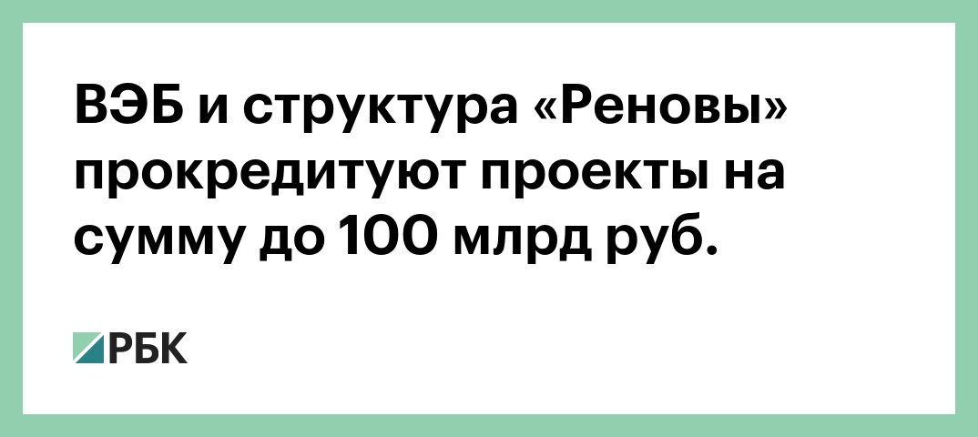 ВЭБ и структура «Реновы» прокредитуют проекты на сумму до 100 млрд руб.