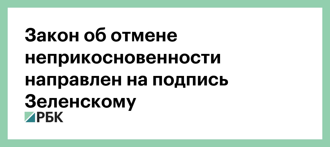 Закон об отмене депутатской неприкосновенности направили на подпись президенту Украины Владимиру Зеленскому. Проект документа опубликован на сайте Верховной рады.