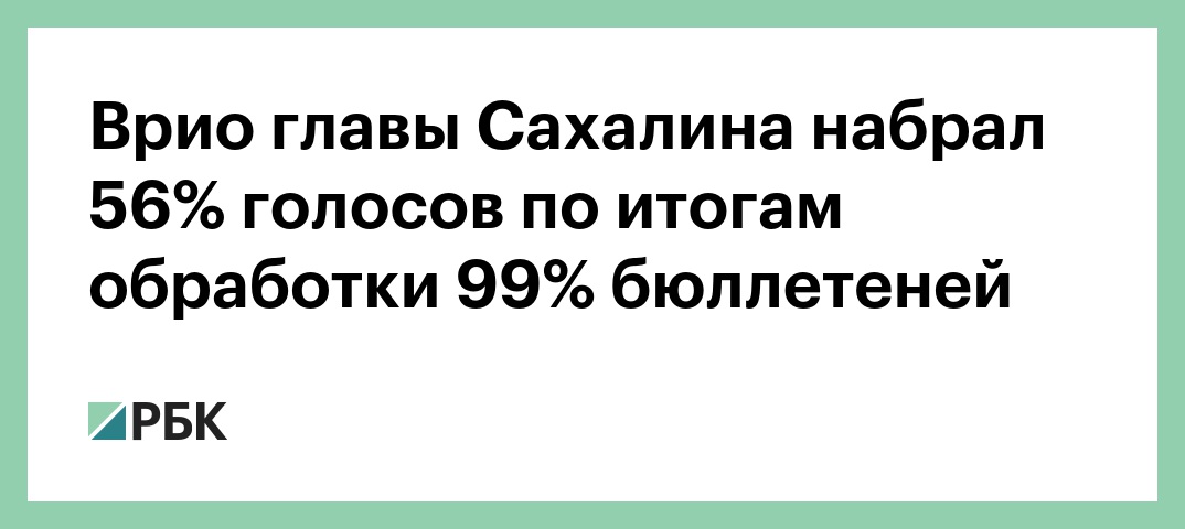 Врио главы Сахалина набрал 56% голосов по итогам обработки 99% бюллетеней