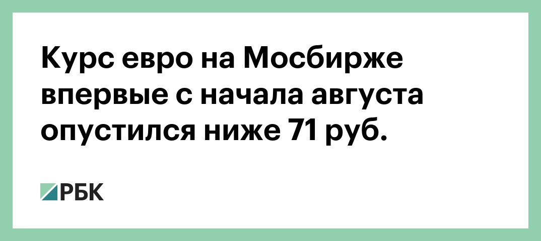 Курс евро на Мосбирже впервые с начала августа опустился ниже 71 руб.